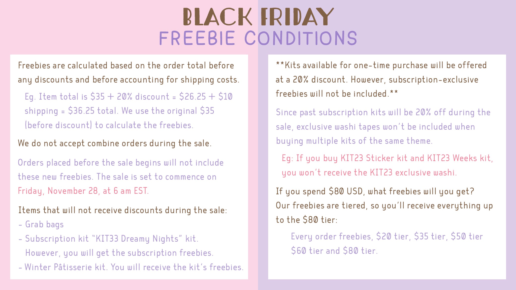 • Past subscription kits