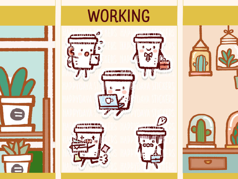 His name is Cuffy! A happy take away coffee cup... He's working very hard!