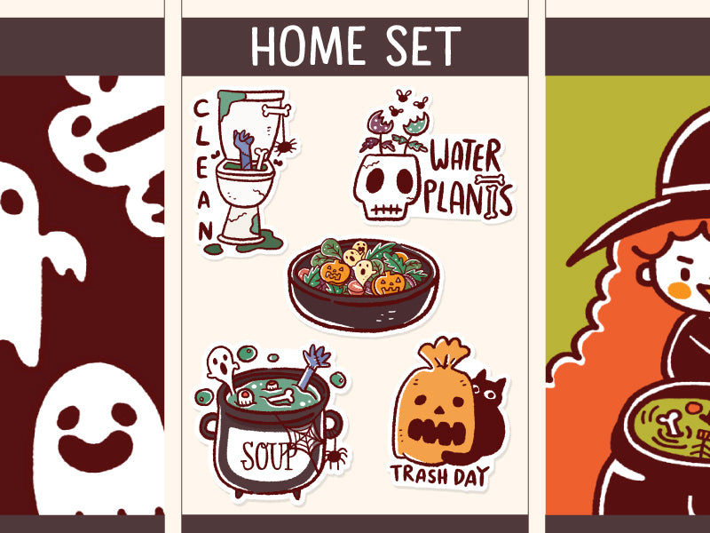 Our home stickers in Halloween theme! There are 5 different designs in this sheet.